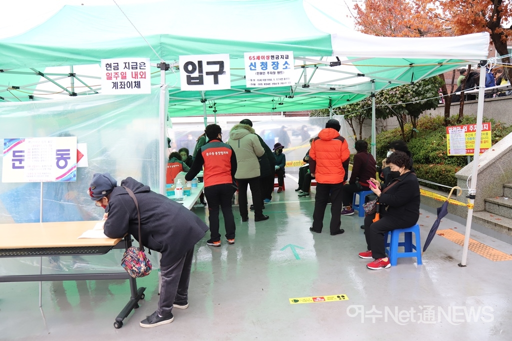 문수동 사무소 주변으로 신청자들이 길게 줄을 서서 기다리고 있다. 2월 1일 09:45경 문수동 사무소 주변으로 신청자들이 길게 줄을 서서 기다리고 있다. 2월 1일 09:47경 문수동사무소 주차장의 65세 이상 현금지급 신청 장소 현금 지급은 통장으로 입금이 된다. 신청장소에서 공무원들이 신분증과 통장계좌를 확인하고 있다. 현금 지급은 통장으로 입금이 된다. 신청장소에서 공무원들이 신분증과 통장계좌를 확인하고 있다. 문수동사무소 내부에서도 신청서 작성을 도와주고 있다. 일반 민원인과 섞여 혼잡하다. 현금카드 신청은 2층 다목적실. 대부분 이곳에서 신청하느라 기다리는 시간이 다른 곳 보다 긴편이다. 문수동 사무소 2층 다목적실 내부 모습. 순번대로 의자에 기다리다 접수를 한다. 문수동사무소 앞은 시간이 지나자 점점 줄이 길어지고 있다. 09:55경의 모습 4인가족 여수시재난지원금 현금카드를 받은 한 시민이 sns에 올린 사진 캡쳐