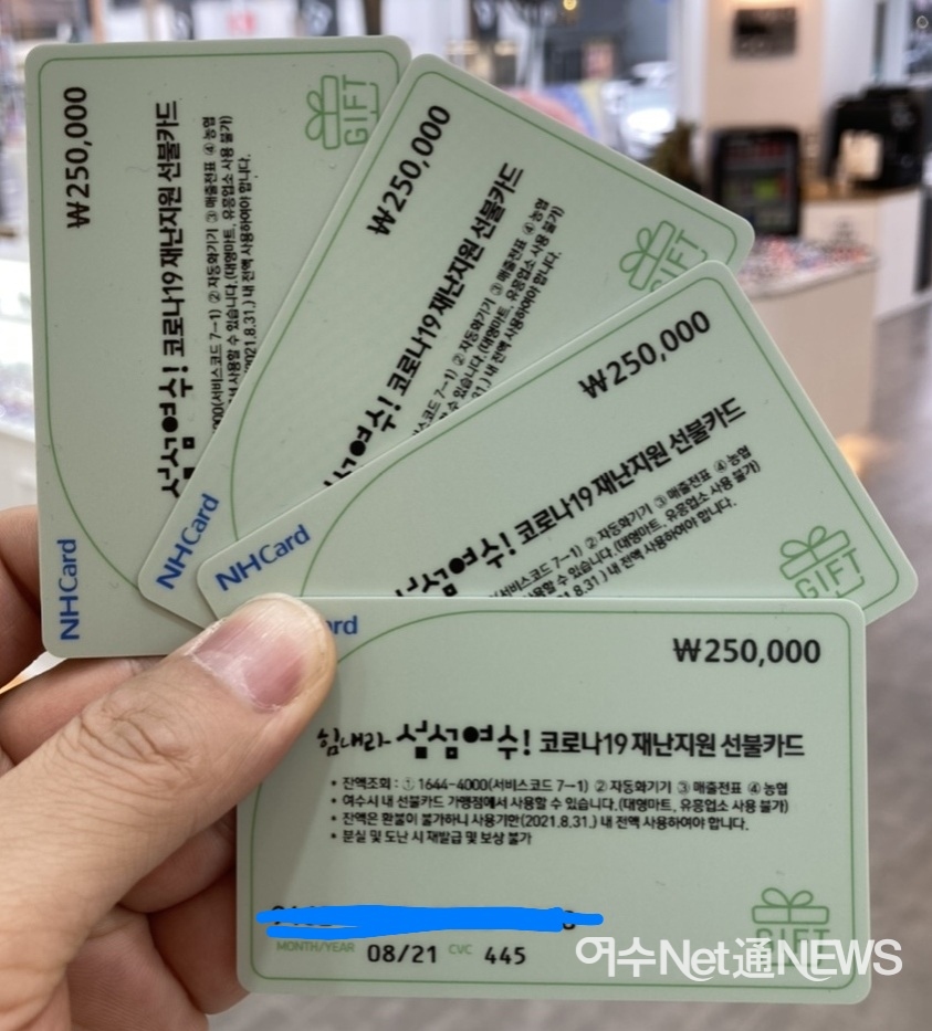 강팀장은 순천과 차이나는 부분에 대해 "현금으로 입금해버리면 좋은데 체크카드를 한 이유는 현금으로 입금하면 여수지역 소상공인 쓸 가능성이 낮다"면서 "선불카드(체크카드)는 지역제안과 업종제안이 가능해 소상공인에게 직접적인 혜택이 간다. 특히 설연휴에 지급하려보니 노령연금으로 지급이 안되어 부득하게 현금으로 지급하게 되었다"라고 해명했다.