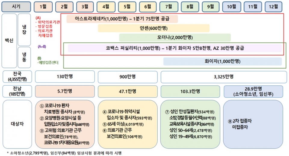 전남도가 소아·청소년, 임신부를 제외한 도민 156만명에 대한 코로나19 백신 예방접종 월별 계획을 발표했다.