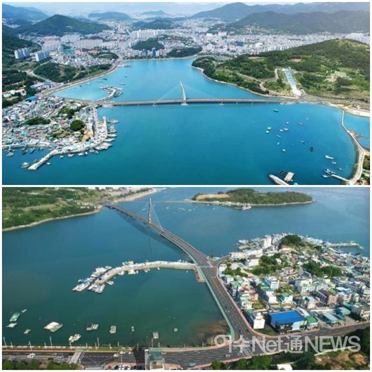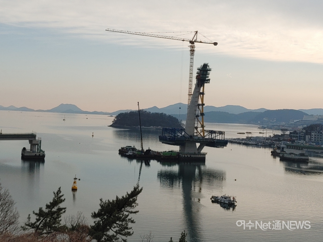 여수의 지도가 새롭게 바뀐다. 선소에서 예울마루간 산책로에서 한눈에 보이는 웅천에서 소호동을 연결하는 일명 웅천-소호대교 공사가 한창이다. 현재까지 7부능선을 넘으며 순조롭게 공사가 진행 중이다.