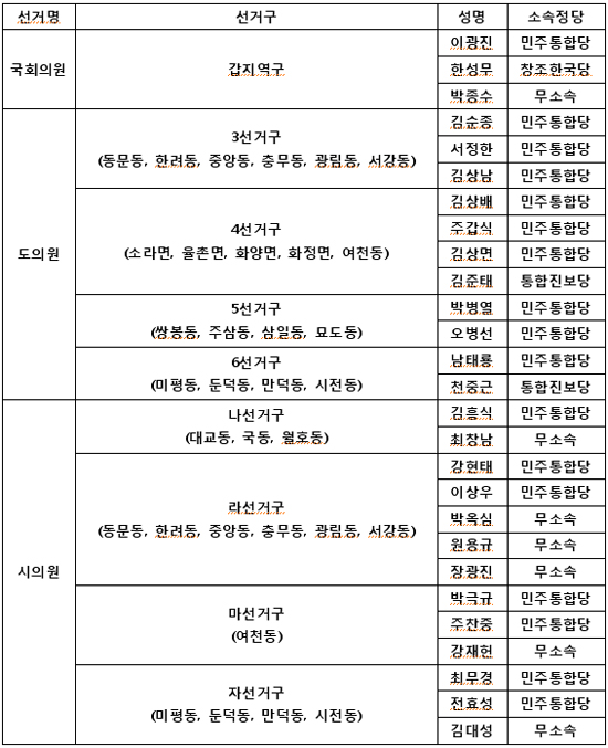 4일 현재 시의원 13명, 도의원 11명, 국회의원 3명