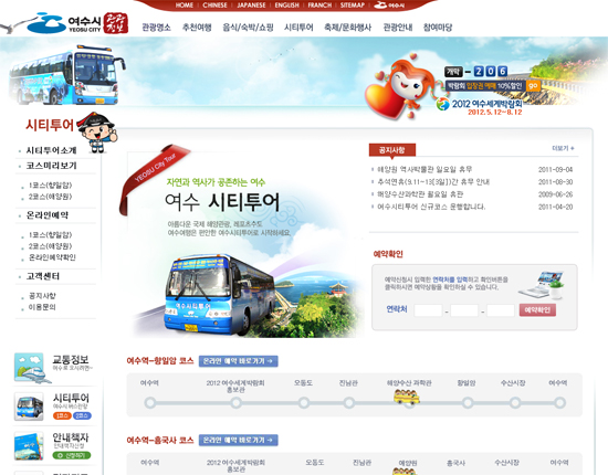 19일 여수시에 따르면 시티투어를 이용한 관광객이 지난 2009년 7,657명, 2010년 6,995명이었던 것이 올해 들어 지난 4월 27일부터 시작된 제2코스 탑승객은 9월 30일 현재 2,901명이며, 제1코스는 7,548명으로 합계 1만449명이 탑승했다.