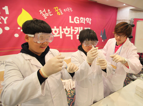 한편, LG화학 CHO(최고인사책임자) 육근열 부사장은 “많은 청소년들이 미래 과학기술인재로 성장하는데 LG화학 화학캠프가 그 밑거름이 되기를 희망한다”며 “LG화학은 향후에도 미래 사회의 주역이 될 청소년과 아동들에게 꿈과 희망을 심어주기 위한 다양한 청소년 교육 프로그램을 지속적으로 실시할 계획”이라고 말했다.