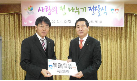 이들은 지난해 12월부터 올해 1월초까지 자치위원회와 자치센터 프로그램 수강생, 통장협의회, 새마을협의회, 바르게살기, 지역 주민들이 함께 모은 성금으로 불우이웃 13세대에 백미20kg 13포를 지원하고 저소득층 자녀들에게 건전한 학습 공간을 제공하기 위해 꿈나무 어린이 배움터에 현금 60만원을 후원했다.
