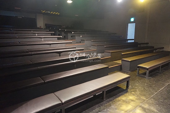 공연이 시작되기 전의 잠깐의 휴식시간 동안 쉬는 공간이란다. 이런 틈새 공간으로 한숨돌리는 여유가 되기도 하겠다. 작은 공간을 어떻게 하면 쓸모 있게 사용하고자 하는 흔적이 곳곳에 베어있다. 극장전용의 건물이 아니다 보니 뒷좌석으로 갈수록 천정이 머리에 닿을 듯 하기는 해도 제법 소극장으로서 면모를 갖추고 있다.
