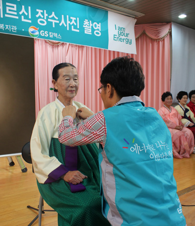 장수사진을 찍기 위해 한복을 곱게 차려 입고 나온 박성자 할머니(여, 84세)는 “몇 해 전부터 사진을 찍어야지 하면서도 몸이 불편하고, 돈도 많이 든다고 해서 못 찍고 있었는데, 이렇게 직접 복지관을 찾아 봉사활동을 해줘서 정말 고맙다”며 감사의 뜻을 전했다.