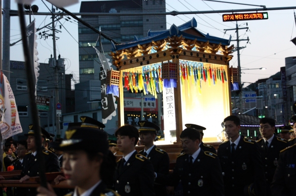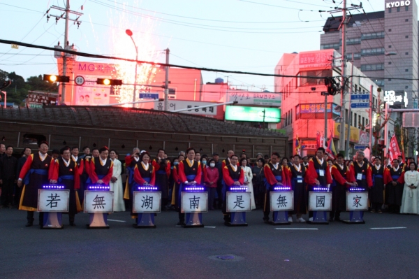 3일 저녁 전남 여수시 중앙동 일원에서 23전 23승 임진왜란을 전승으로 이끈 이순신 장군의 출정식을 기리는 통제영 길놀이의 화려한 전야제가 펼쳐졌다.