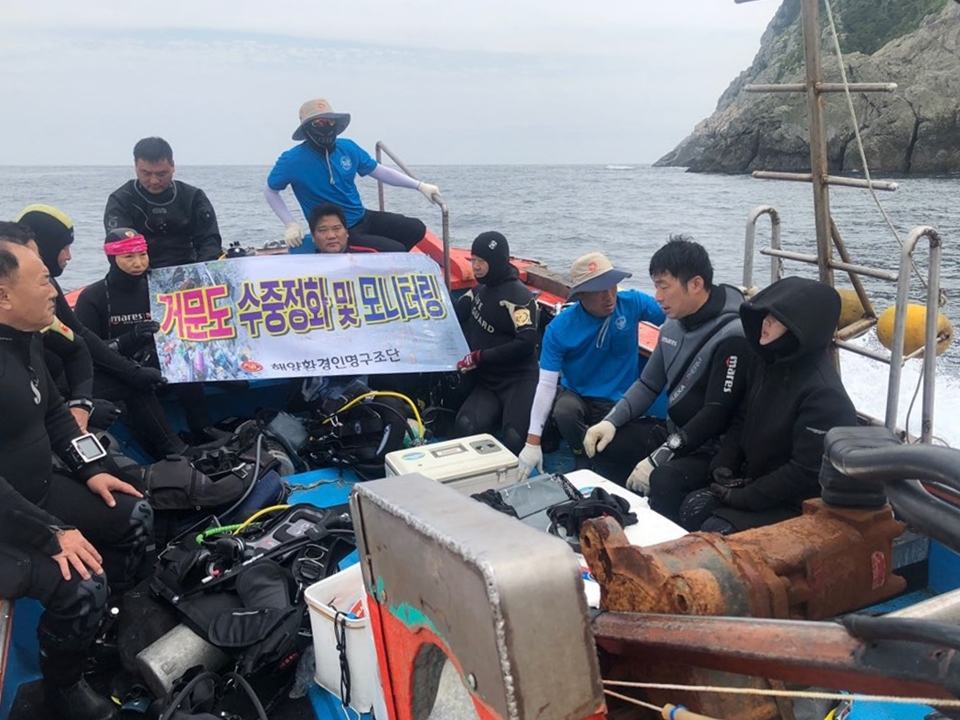 여수환경인명구조단 여수구조대(대장 박근호. 아래 구조대)에서는 거문도 일원에서 수중정화활동과 바닷가 해양쓰레기 청결작업을 실시했다.