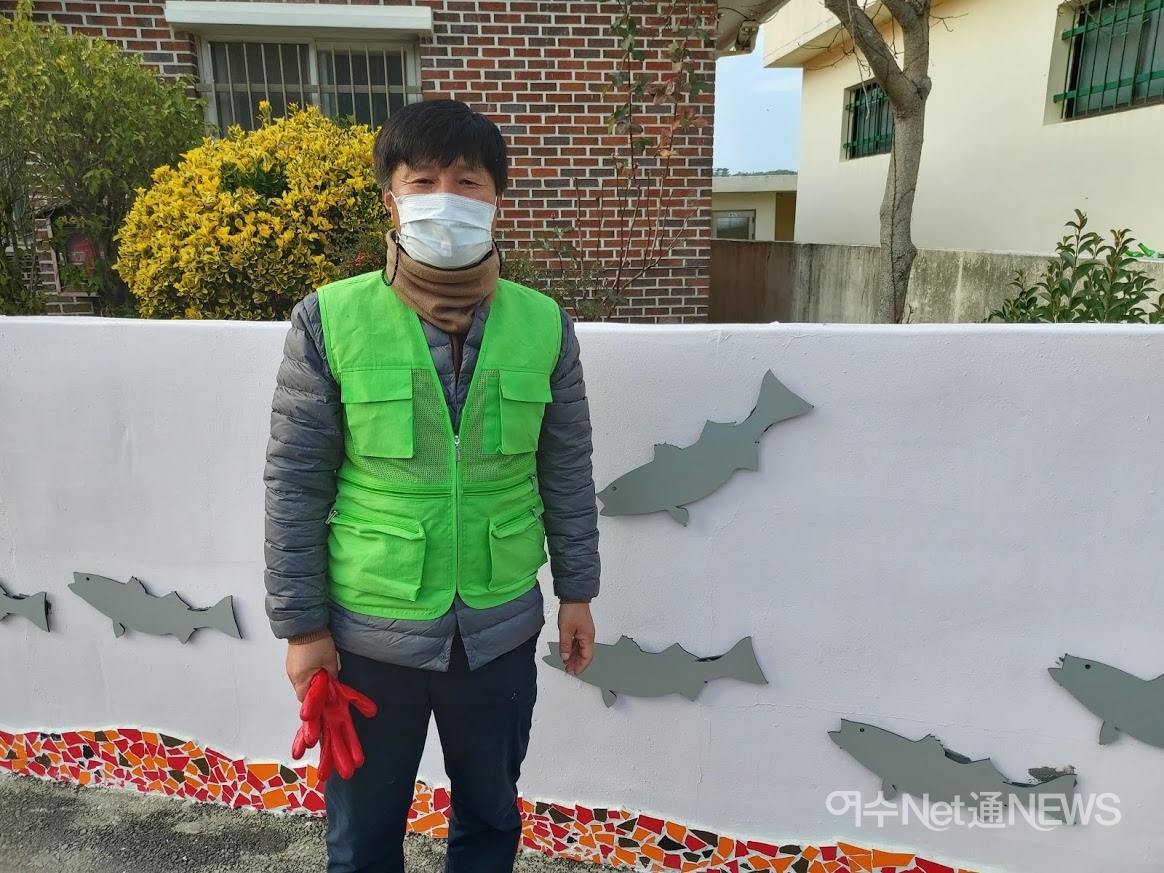 일단 담장 도색을 하려면 허물어졌거나 도색을 해도 소용없을 정도면, 우리가 그냥 수리도 합니다. 담장 보수를 하다시피 하는 곳도 있습니다. 작업하면서 ‘여긴 우리 집이다’ 그런 맘으로 하죠. 이게 따지면 실명제, 여수미술협회 회원들이 했다는 게 실명제로 남으니까요. 책임감을 갖고 하고 있습니다.”