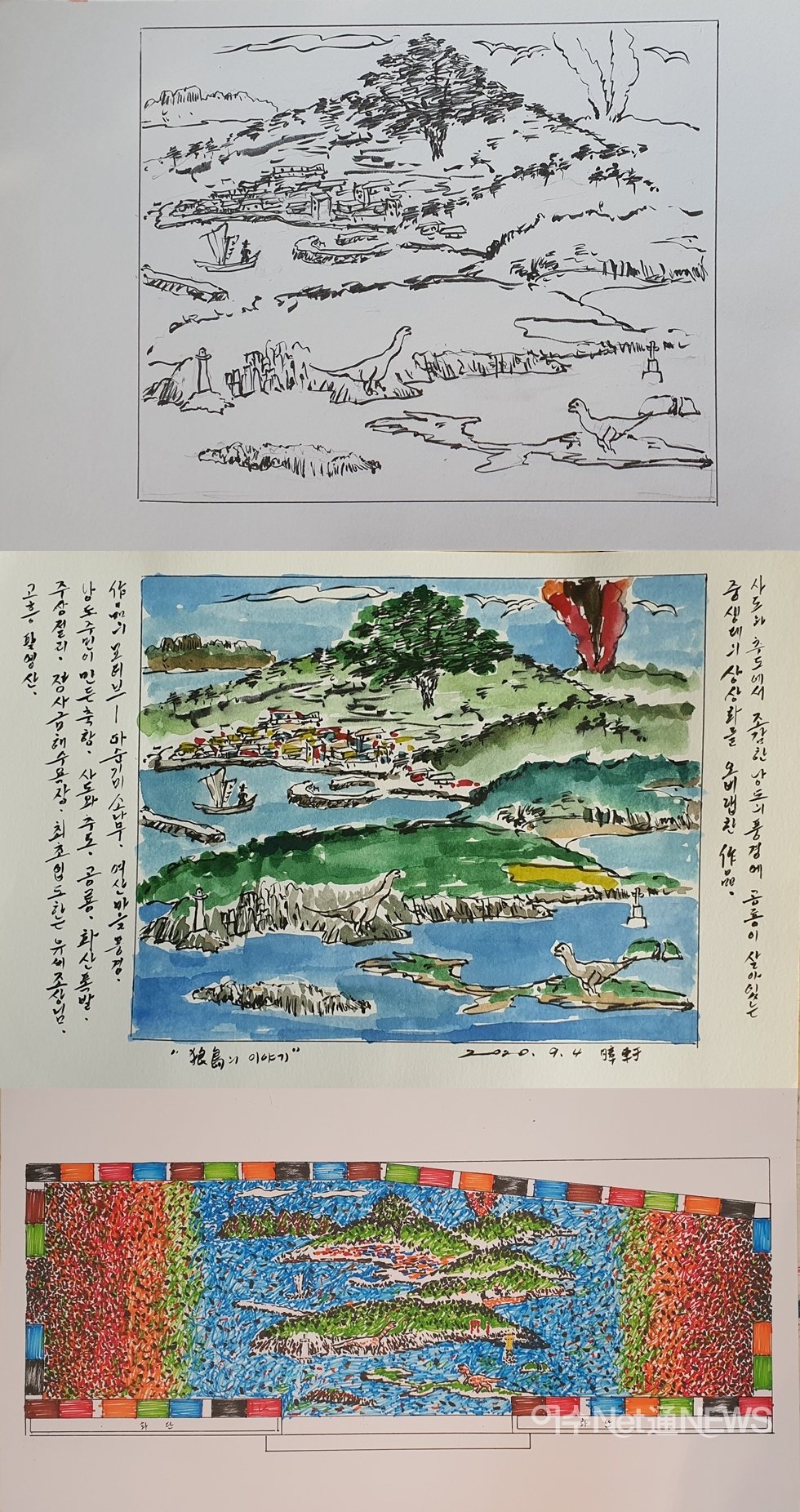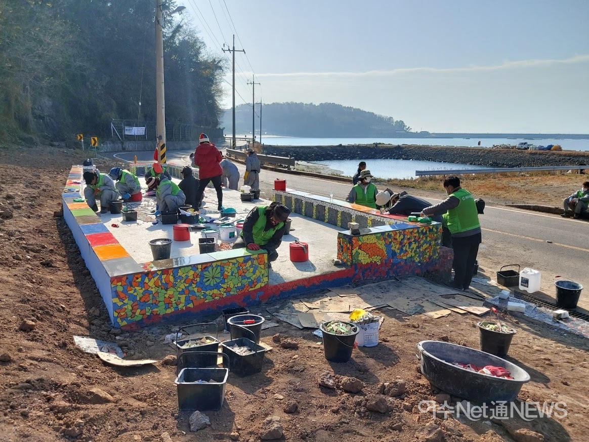 조각 타일 작품과 함께 명소로 자리할 마을 쉼터와 사도와 추도가 내려다 보이는 전망대 포토존을 만들기도 합니다. 마을길 전체 3Km를 미술로 변화를 주기때문에 ‘낭도 갱번 미술길’이라고 부릅니다.”