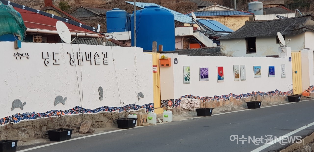 여수시 화정면 낭도 여산마을 3km이르는 마을길이 마을쉼터, 인생사진을 찍을 수 있는 포토존, 예술성이 가미된 마을담장의 조각 및 벽화, 작가의 미술 작품과 마을주민 사진 등으로 꾸며졌다.